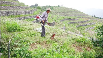 6月24日,城南镇珠村村后山,农民正在低丘缓坡地除草。2014年,珠村村在荒地实施低丘缓坡改造,开垦出235亩耕地。如今,这片开垦地年收入近20万元,成为珠村村级集体经济收入主要来源。 本报记者 刘振清摄