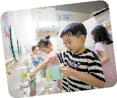 活动渐渐进入尾声,孩子们挤牙膏、拧毛巾,有条不紊地完成睡前洗漱工作,躺进睡了3年的小床。部分孩子由于刚才游戏的兴奋劲未过,还在跟同伴们开心地聊着。时间慢慢地流逝,孩子们的眼皮越来越沉,打个呵欠,翻个身,进入了梦乡。而老师们则一夜无眠,轮流守着孩子们,不时为他们掖掖被子,赶赶蚊子……