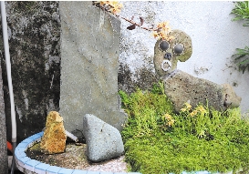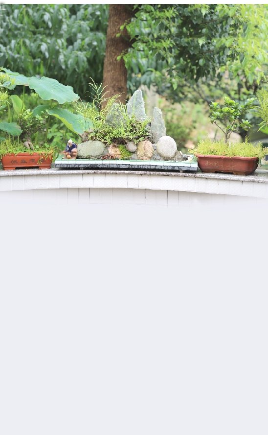 黄立均用石头拼成的盆景,看着妙趣横生。