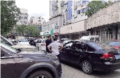 9月19日下午,记者就在万寿路某银行门口遇到了一件尴尬的事:银行门口的停车场内,停满了车,只留一个狭窄的通道,根本无法交会车,偌大的停车场没有进出口指示牌,也没有人员管理,当记者准备离开时,发现前后两个出口皆被堵。据银行保安人员介绍,这里以前是公共收费停车场,并非银行专用,近段时间变成免费停车场后,几乎天天满位,进出口发生堵车也是常有的事。