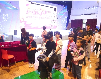 10月13日下午,市青少年宫多功能厅内,少先队员正在参与“我是红领巾小创客”现场科技闯关活动,活动包括3D打印笔、AR跳跳球、智力七巧板、机器人跳舞、空气炮、智能赛车、VR战马、国防部队拼装等项目。