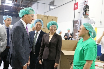 富岭塑胶董事长江桂兰(右二)陪同美国宾夕法尼亚州副州长Mike Stack(左二)参观富岭美国宾州工厂。