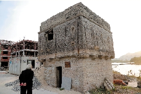 墙里陈氏旧宅北边过去,新河通城区的道旁有一座楼岙堂,也就是陈履庭设粥厂的地方。在墙里陈氏旧宅四周,据说原来各有一座炮台,当地人称“三只半”炮台,那半只是因为这一座偏小一点,现在幸存的是西北角河边的一座。陈孟森说,原来村民打算给拆掉用来砌河坎的,他用一堵墙代替,保住了这座炮台,现在已定为温岭市不可移动文物,挂牌保护了。