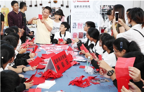 为让学生们近距离接触体验非物质文化遗产的独特魅力,了解传统文化的深厚底蕴,传承中华民族优秀的传统文化,在当天举行的温岭市文博会上,举办方特别邀请草编、船模、海洋剪纸、蓝印花布等实用型非物质文化遗产传承人现场向观众展示制作手艺,并手把手地教学生剪纸和蓝染,让孩子们在动手、观赏、体验中了解中国传统文化,开启非遗文化之旅。 本报记者 刘振清摄