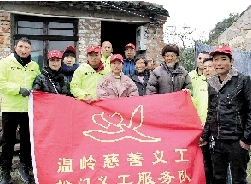 成立4年,有注册义工108人,其中党员义工4人。成立义工队党支部,在温岭慈善义工队中是首创。4年来,共开展大小活动900次,参与义工5000多人次,受益人数3万人次,先后获得“温岭市慈善义工优秀服务队”“敬老文明号”等称号。