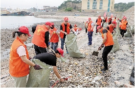 义工们开展“净滩”活动。