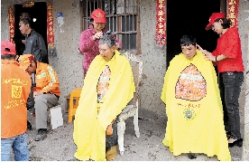 义工们为岛上村民理发。