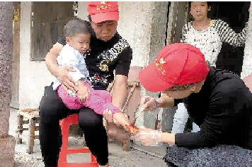 本报讯(记者陈远笛)“好峰,我们去医院了!”10月23日上午,大溪义工服务队义工来到方山村,将困难家庭儿童小好峰送往医院医治脚伤。“这是我们送他来医院的第二天,根据医嘱,要连续打4天点滴。”