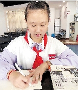 她的毛笔书法曾经在《温岭日报青草地》报头发表过。她习的是颜真卿楷体,这种字体平时临摹有一定的难度,但是每写一个字她都尽心尽力,写到让自己满意为止。