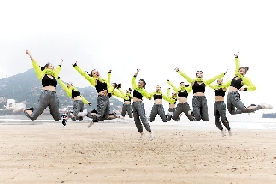 嘉兴队在沙滩健身操舞比赛上合影留念。