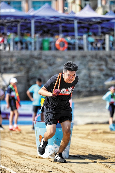 沙滩趣味比赛上,齐心协力项目体现了团队合作的重要性。