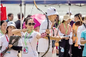 沙滩趣味比赛上,射箭项目展现了参赛队员的飒爽英姿。