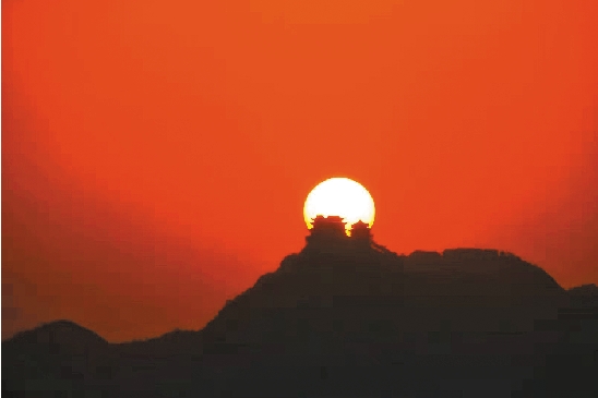 “追了一个月,终于拍到了这张日落楼旗尖。”微友在朋友圈纷纷赞叹图片美的同时,也对拍摄者的坚持投去了赞许。在拍摄风景照时,恰当的角度和时机,往往是影响整张图片的关键。每天的日落位置是不同的,为了能够找到合适的角度、适当的位置,抓好转瞬即逝的机会,让落日正好在温峤楼旗尖的后面,拍摄者着实费了很多心思。 本报通讯员 梁丹斌摄