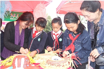文创市场区各个摊位前挤满了人。来自箬横三小的学生,展示了他们编织的草编物品,还在现场教有兴趣的市民编织草帽,一抬一放之间,一圈草帽便已编好。此次展示,不仅得益于箬横三小“多彩教育”的办学理念和周边乡土特色文化的融合,还得益于市乡村七巧板社团资源的有效对接,以及多方的共同合作。