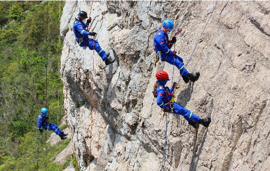 4月25日,温岭蓝天救援队在石塘镇九曲城头开展“心肺复苏”技能和“岩降”体能训练。