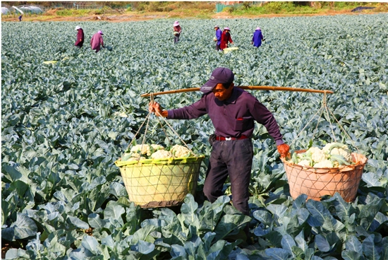 10月20日,石桥头镇沙角村种菜大户正在收割花菜。