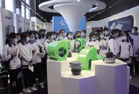 “你们猜,这个线圈会在成品风机的哪个部位?”在嵌线工区,工作人员指着铜线绕成的线圈发问。马上,学生们七嘴八舌地讨论开了。安在机器里面,安在机器底下……学生们的猜测五花八门。工作人员告诉学生们,虽然它只是一个小小的零部件,却是风机里的关键所在,用于接通电源。学生们一边听工作人员介绍,一边把自己感兴趣的知识点记录在笔记本上。