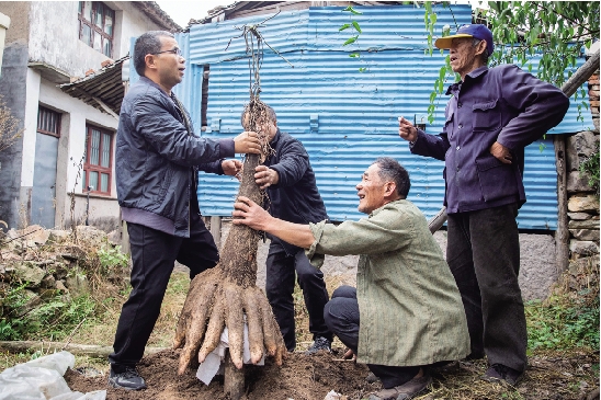 “山药和番薯的种植条件很多是一样的,首先要选择好地块,要有较高的湿度。山药的生育期一般是3~4个月,要挖深坑穴,保证土壤疏松通气。”程岳正说,能成功种植出巨型山药,除了要有相对专业的管理技术外,水分、土壤和肥力水平等多方面种植因素也至关重要。
