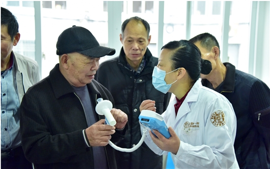 当天上午9时,参加义诊的群众早已自觉地排好队,接受量血压、测血糖、肺功能测试等服务。来自市一院、市中医院、台州市肿瘤医院、台州市中西医结合医院、温西中心卫生院等十余位呼吸内科专家组成的义诊服务队,为群众进行了体检,并为患者提供了合理的诊疗建议,指导患者定期检测肺功能。