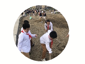 种菜要先平整土地,再在土地上挖上浅坑,把种子放入其中,然后在坑上铺上一层泥灰,最后给每个坑浇上水。于是,同学们进行了分工:有的挖坑,有的放种子,有的铺泥灰,有的浇水。你一下,我一下,我们开工了!