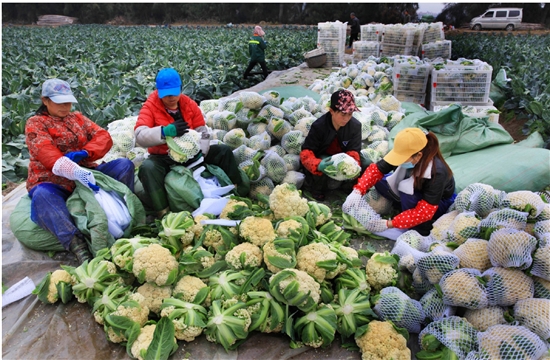 近日,我市菜农种植的花菜喜获丰收并陆续采收,种植户们忙着收割、分拣、装车销往周边省市。