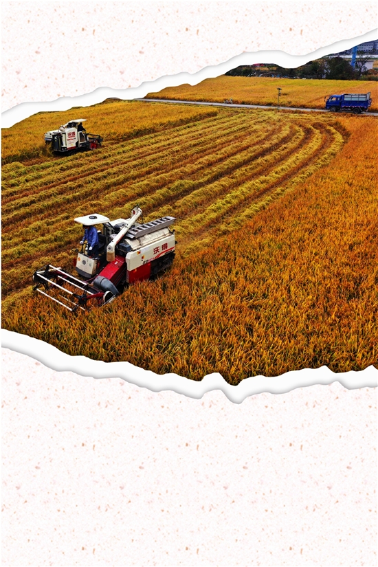 | 12月1日,收割机在收割桂英粮食专业合作社今年最后一批晚稻。 |