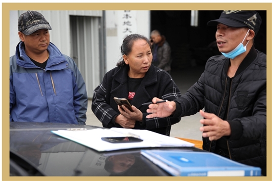 | 12月1日,余桂英向大溪镇农业综合服务中心工作人员汇报她一年的农药使用情况。 |