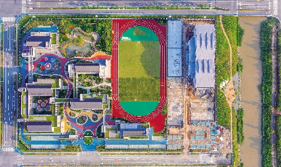 新华书店的入驻,给学校带来了不一样的生机。而校园里的潺潺水意则给学校添了一份宁静。俯瞰整个校园,一条小河贯穿其中,将教学区和生活区划分得清清楚楚。利用水流,学校打造了水上校园。清澈的流水覆盖石头,裹住行政楼和操场,偶有一两只白鹭停留于此,一股古韵自然流露出来。另外,学校还种植了樱花、梅树、银杏等各种绿植,让每一个季节,校园都有不一样的风景。“相比原先的学校,新校园的面积更大,风景更美,教学设施齐全,还多了一些新的功能室,比如心理辅导室、教师健身房、笼式足球场等。”马驹告诉记者,这种美丽的存在不仅为了学生,也是为了吸引教师,让他们乐于留在学校,将更多的精力投入到工作之中。