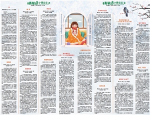 它的叶子是深绿色的,椭圆形的叶边缘像锯齿一样,上面有一个个白色的心形图案,构成了一个个小桃心。大部分的叶子都是向上伸展,像一把把绿色的小雨伞。花柄是棕色的,只有吸管般粗细,它们有的弯下腰垂下身子,好像向人问好;有的靠在叶子上,好像要摔跤了;还有的把头伸出去,四处张望,像一位尽责的士兵。花骨朵儿长在花柄的顶端,起初被绿萼紧紧地包裹着,只露出半个脑袋,像小鸡的尖嘴巴。后来慢慢长大一点,花骨朵逐渐由粉白色转变为淡淡的粉红色,花瓣微卷,向下垂挂着,像一盏半张开的小灯笼。开花时,它的脑袋会完全朝上,花朵展开五片花瓣,每一片花瓣就像一只只兔耳朵。花的颜色有深有浅,花形也很别致:你瞧,那朵花的两片花瓣相对着,其他三片花瓣向下舒展开,多么像翘起的兰花指啊!有的花瓣挤在一起,是因为感到寒冷吗?还有的花瓣合拢着,像一个个小喇叭,似乎在说“冬天到了!冬天到了!”