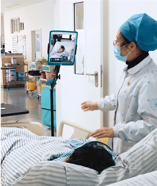 记者了解到,目前市四院将ICU“远程探视”时间固定为每天下午2点半到3点,方便患者和家属进行视频沟通。