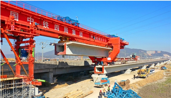 1月13日,杭绍台铁路与甬台温铁路温岭站北端下行联络线特大桥最后一孔箱梁顺利架设,实现新年施工“开门红”。