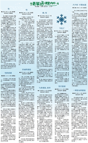 “下课……”话音未落,我便夺门而出,驻足雪中。似烟非烟,如雾非雾,那些雪花肆意地飘落我的发丝,乌黑之间多了几抹亮眼的银白……手握兴奋,我伸出冻得僵硬、惨白的手收集雪。一个,两个,三个……愈来愈多的雪娃仔敞开衣襟,投入手掌,惨白之下又将添得一层白皙。