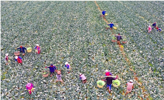 1月24日,红日农业专业合作社社员正在采收西蓝花。