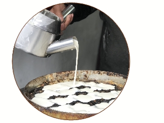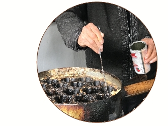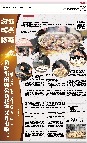 刚出锅的梅花糕味道是最好的,一锅卖完了,朱先均赶紧开始制作下一锅。
