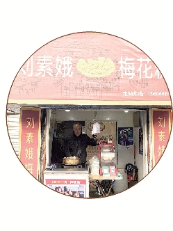 1.店面的招牌写的是“刘素娥梅花糕”,刘素娥是朱先均老伴的名字。