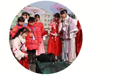 “春节是我国最具代表性的节日,但是现在的年味越来越淡,传承的文化越来越少,我们希望通过‘来年会’营造浓郁的新春氛围,教学生认识传统、继承传统,增强对中华传统文化的认同感和自豪感。”松门三小校长张娜伟说。“来年会”包含了3层意思,即“来,玩年会”“来年,再会”及“来年,会显个会(方言:懂事、能干)”,给予学生美好的祝福。