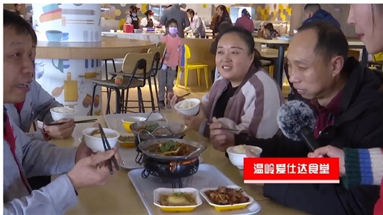 春节的仪式感中,吃是不可忽略的一部分。留在温岭过年的外来务工人员,他们会吃什么?为服务好留在厂里过年的700多名外来务工人员,爱仕达厂区食堂做了充分的准备工作。我们的直播镜头中,安徽临泉县的外来务工人员介绍,厂里做出的菜,有着浓浓的家乡味道。“厂里为了照顾我们这些外地员工,做出的菜十分合我们的口味。”韩乐乐说,来厂里2年,这是他第一次没和父母亲一起过春节,但是,响应了单位号召,他不觉得遗憾。直播中,这位有点害羞的小伙子,向老家的父母送上虽然简短却暖心的祝福:“爸妈,新年好,祝你们身体健康。”