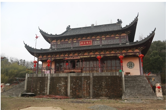 尚书庙右侧有条通往黄茅山上叶霞寺(旧志记为逸霞寺)的水泥路,是善男信女于2010年捐资建造的。印象中,记者在此路建造前就去过一趟叶霞寺,这一次重游时发现有不少变化,一是在原老寺的薜荔老墙之前,新建了一座大雄宝殿。记者上次来时,看到的则是一个木制的大雄宝殿模型,每个建筑构件上都标着乐助的钱数。宝殿前的天王殿还未建好,暂时搭棚,供奉弥勒佛、四大天王等神像;二是原叶霞寺的左侧房子改建为第二次国内革命斗争时期中共温岭县委旧址纪念馆(2015年12月12日正式对外开放),右侧的放生池则加了石栏杆,那块“放生池”石碑还在。