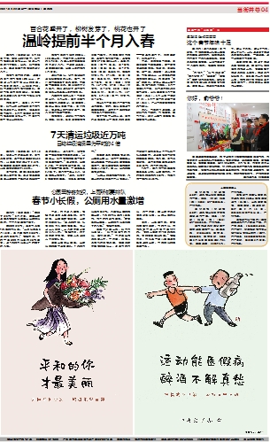 本报讯(记者陈潜)2月20日午间,在阳光的照耀下,我市气温飙升至20℃以上。记者从气象部门了解到,当天,我市宣告入春,较近30年平均值提前近半个月。