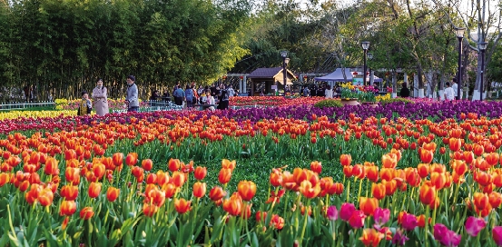 近日,位于锦屏公园内的郁金香盛开,前来赏花的市民和游客络绎不绝,大家在花圃边用手机、相机捕捉最美的春色,享受花海带来的惬意。
