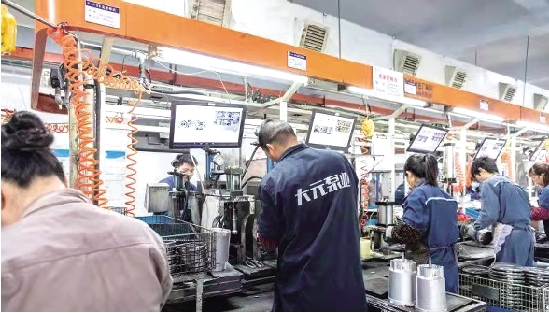 近日,在浙江大元泵业股份有限公司的生产车间里,员工们正在生产线上忙碌着。今年春节期间,大元泵业有超过九成的外地员工选择留在本地过年。正月初九正式上班的当天,员工们基本就已到位,全面开工。