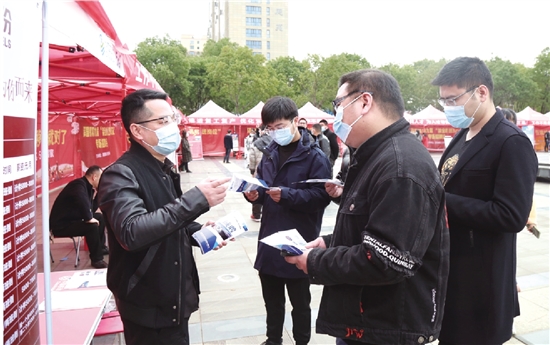前来参加招聘会的还有不少三产行业的企业。比如,中通快递需要招聘100多人;新开业不久的领悦广场也将摊位摆在了显眼处。