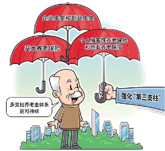国际经验表明,多层次的养老金体系更加风险可控、更具可持续性。国际上普遍选择国家、单位、个人养老责任共担的三支柱养老金体系。在我国,第一支柱为基本养老保险,第二支柱即企业年金和职业年金,第三支柱包括个人储蓄性养老保险和商业养老保险。 据新华社