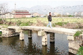 父子孝行坊坊柱曾作为桥墩立在河中。