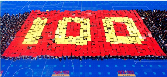 3月15日,新河镇高桥小学举办“扬垦荒精神,庆百年华诞”春播节开幕式,带领学生们学党史、唱红歌,并组织800余名学生高举牌子,拼成一个红底黄字“100”字样的大图,以纪念建党100周年的到来。在春播节上,学校还带领学生开垦荒地,播种新绿,培养少先队员传承大陈岛的垦荒精神。 通讯员 林绍禹摄