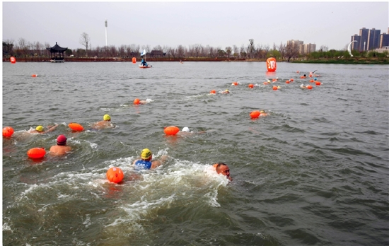 近日,游泳爱好者在九龙汇公园举行防溺水公益宣传和畅游九龙湖冬泳健身游。随着“五水共治”的推进和公园生态的完善,九龙湖水质得到有效提升。经准许,当天,游泳爱好者在这儿举行共享绿水青山畅游九龙湖活动,用“下河游泳”感受九龙湖水质的提升。