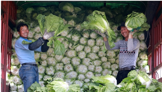 近日,新河镇腰塘新村菜农在采收大白菜。我市近万亩春季大白菜喜获丰收,走俏长三角等地,菜农收入可观。