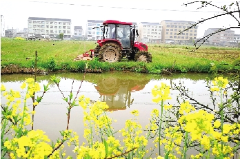 近日,滨海镇桩头村,一台农机正在耕田整地,为种植早稻做准备。成群的鸟儿在田野上飞舞,跟在农机后方嬉戏觅食,构成一幅人与自然和谐相处的春耕画卷。