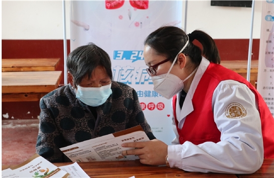 医护人员向村民宣传“世界防治结核病日”相关知识。