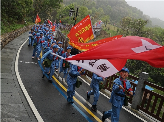 4月2日,太平小学开展了“红色传承,感恩成长”活动,四年级全体学生身着红军服,冒着绵绵的春雨,踏着泥泞的道路,徒步前往烈士陵园,穿越五龙山,返回学校,来回路程共计10公里。“这是我至今为止走过的最长的一段路,也是最有意义的一条路。”返校后,一名学生感慨道。